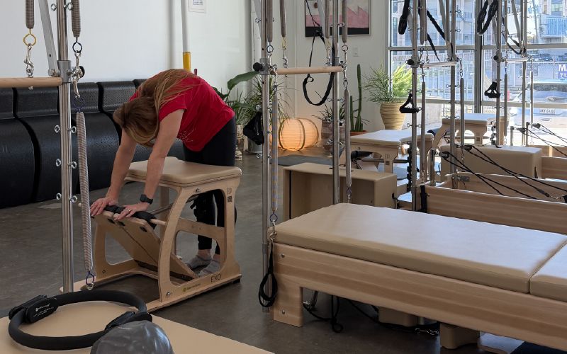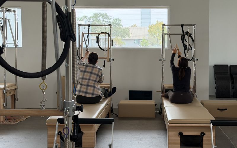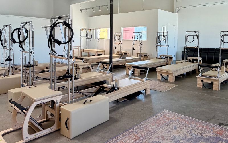 The studio offers apparatus-based Pilates classes, with small group sessions capped at 10 people to support individualized attention and safe, effective movement.